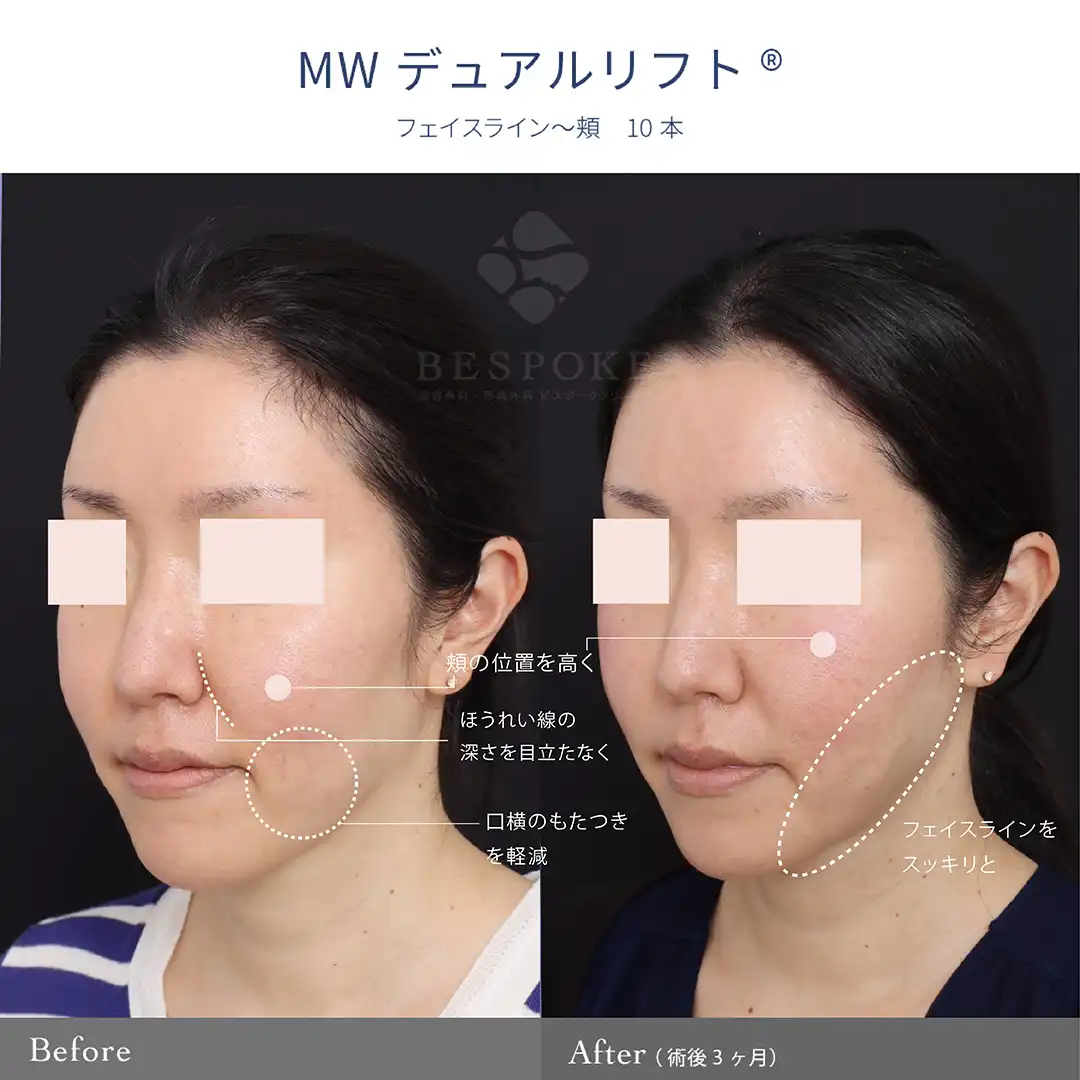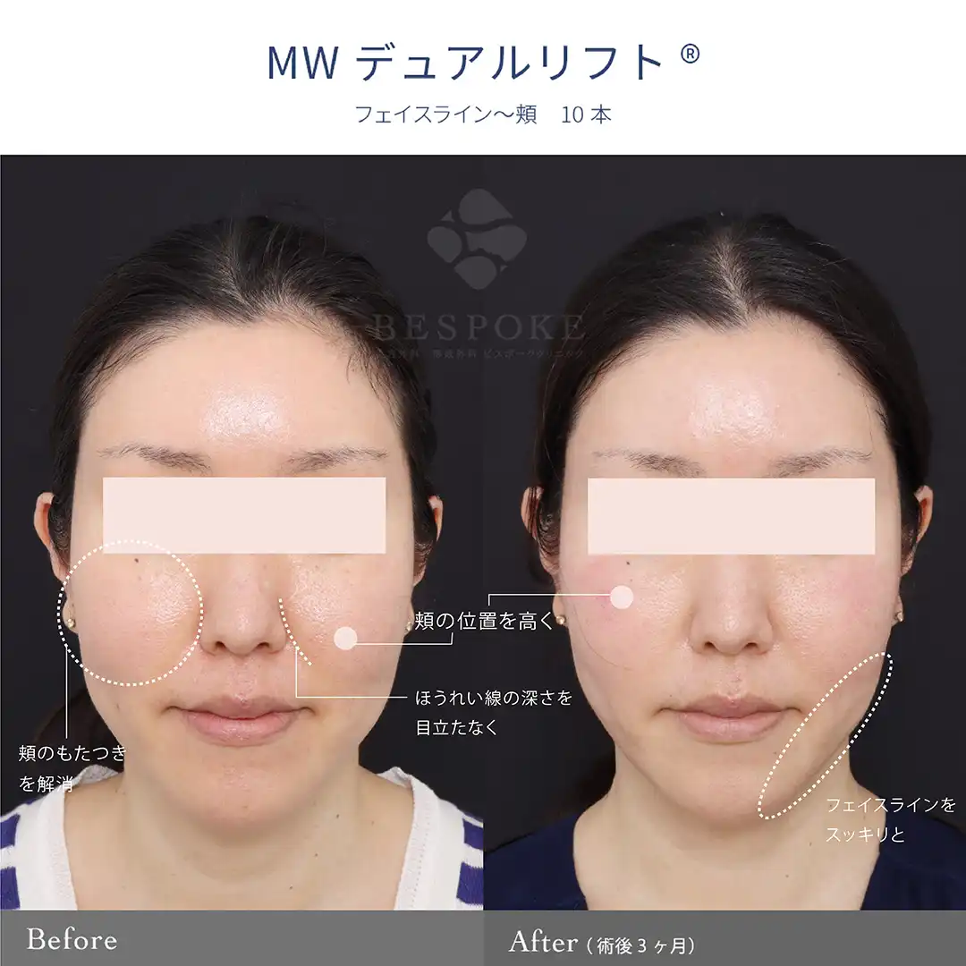 【MWデュアルリフト®】頬の位置を上げて、下膨れ顔を改善。