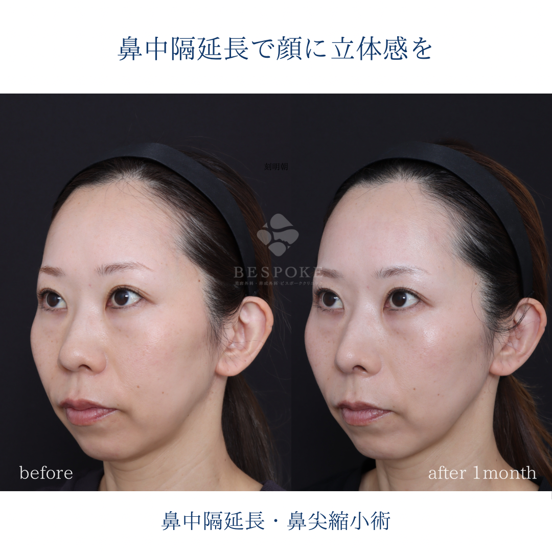 【鼻中隔延長術+鼻尖縮小術】横から見た時の鼻先の丸みを改善。