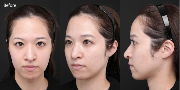 こちらの方は、もともと鼻筋が高く整っていましたが、「鼻先の下がりと丸み」が気になられていました。また、わずかですが、もともと鼻先が左側へ曲がっています。