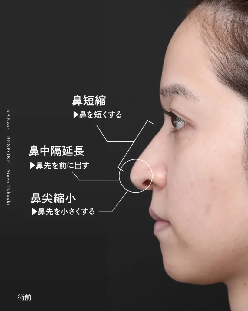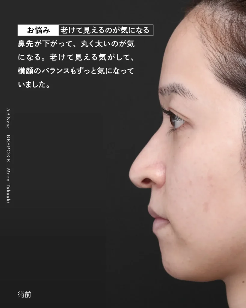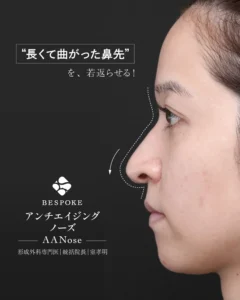 ビスポーククリニックが提案する「アンチエイジングノーズ(AANose)」は、 加齢による鼻の変化(皮膚のたるみ・鼻先の下垂・小鼻の広がりなど)に着目し、 見た目の若返りだけでなく、将来的な変化にも配慮した“長期的な美しさ”を目指す治療です。