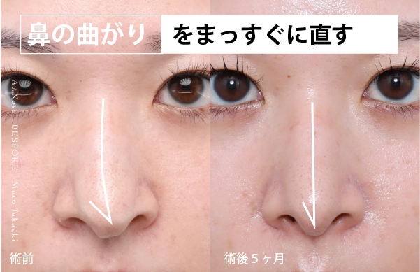この方の場合は、軽度のズレだったため、鼻中隔延長術の範囲内で曲がりを修正しています。