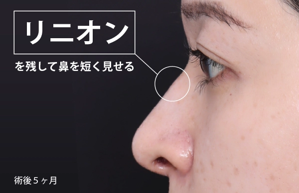 鼻筋の途中には「リニオン」と呼ばれるわずかな段差があります。一見すると、この段差を削って一直線に整えた方がスッキリするように思われますが、実際には光の反射が単調になり、かえって鼻が長く見えてしまうことがあります。