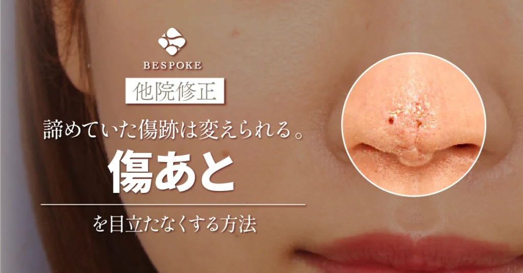 傷跡の段差・凹み、鼻の穴や小鼻の左右差、鼻下が短すぎると感じる 等