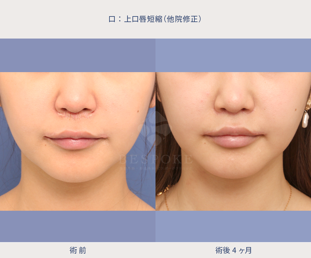 他院で人中短縮術(鼻の下を短くする手術)を受けられましたが、傷跡の幅が広がり、赤く目立ってしまっている状態でした。