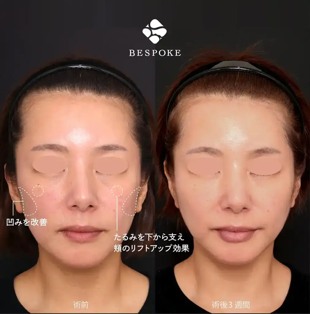 こけている部分を補い、頬のリフトアップ