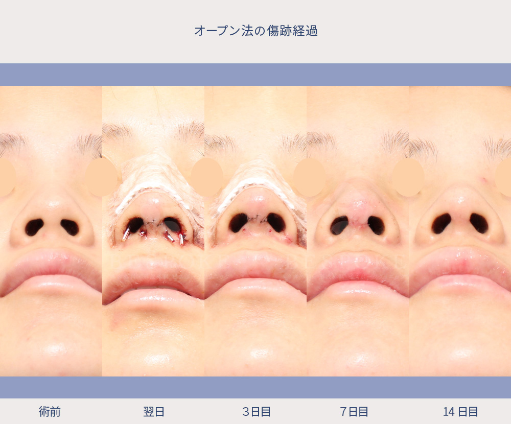 「オープン法は鼻柱を切るので、傷跡が残るのでは?」と心配される方も多いですが、ご安心ください。