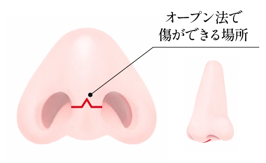 • オープン法: 鼻柱(左右の鼻の穴の間)を切開する方法
