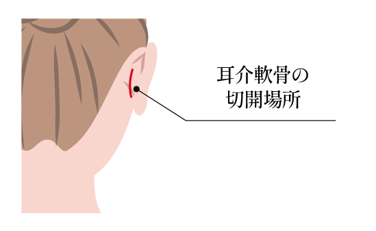 軟骨の直上で丁寧に行い、術後の組織の引きつれ(拘縮)を防ぐ