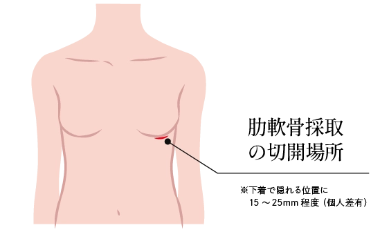 しっかりと高さを出したい場合や、鼻の軟骨が弱い場合などには、胸の軟骨(肋軟骨)を使用します。