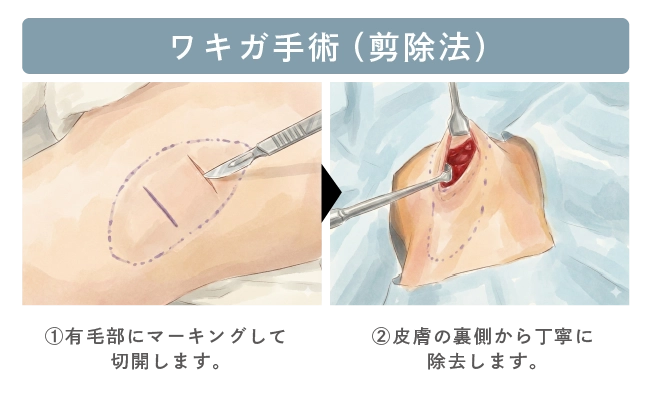 ニオイの根本改善を目指す場合には、アポクリン汗腺を直接取り除く外科的治療(剪除法)が有効です。