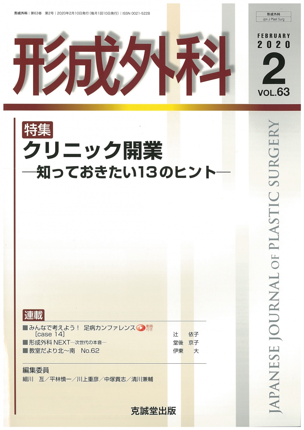 「形成外科」(克誠堂出版)の「特集 クリニック開業 ―知っておきたい13のヒント―」で室先生の記事が掲載されました。