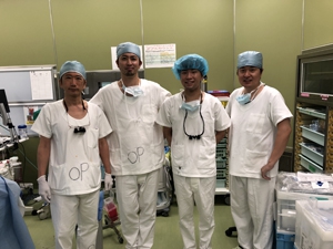 東京慈恵会医科大学形成外科:宮脇教授率いる形成外科チームと耳鼻咽喉科の細川先生、美容外科からは院長が参加して手術を行い、手術後には講演を行いました。