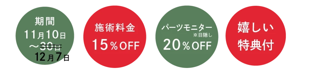 ※上記対象施術以外、カウンセリング料、キャンセル料、麻酔、検査、物品・薬品購入代は割引対象外。