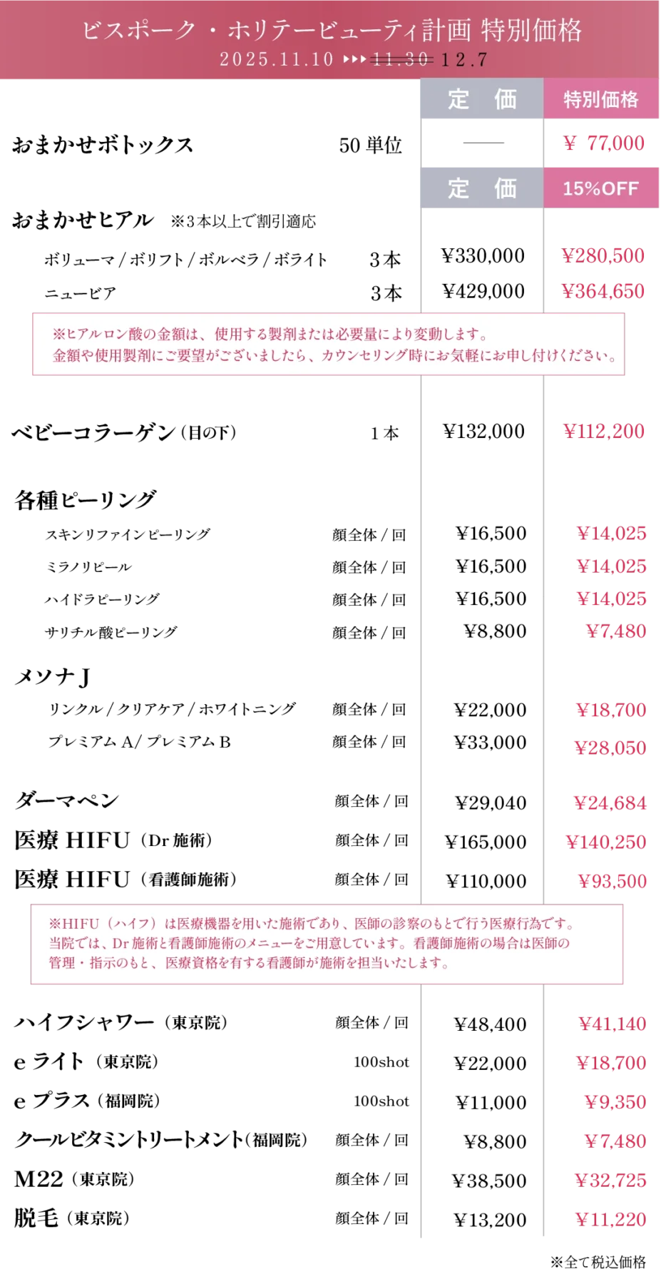 年末を、最高のあなたで。オーダーメイド治療がお得に受けられる『ビスポーク・ホリデービューティ計画』延長決定!