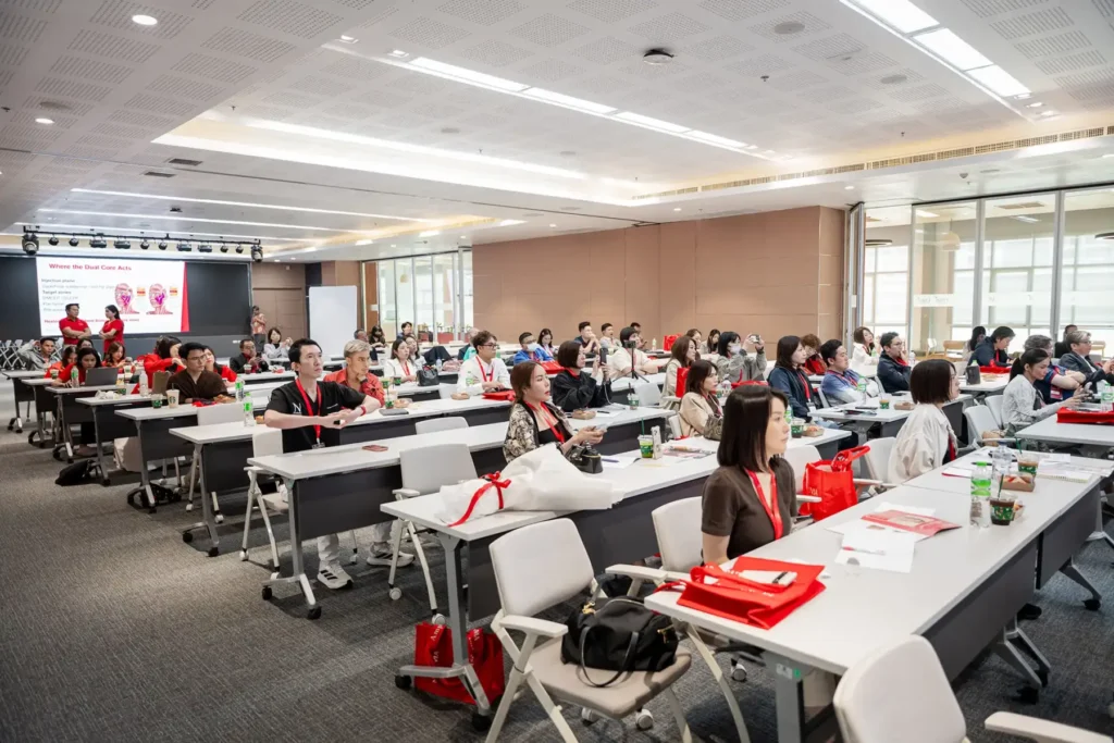 本ワークショップでは、NEAUVIAの注入法や肌育製剤とレーザーのコンビネーション治療について、さまざまな症例を用いたケーススタディやデモンストレーション、解剖レクチャーなどが行われ、最新の知見や技術について学びを深めました。