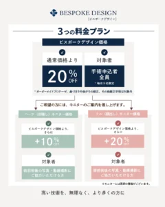 さらにモニターをご希望の場合は、ビスポークデザイン価格に対して条件に応じて追加割引が適用されます。