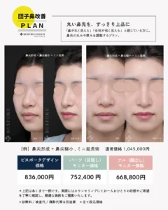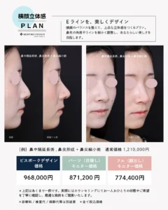 ※オーダーメイドプロテーゼ、鼻詰まりや鼻の曲がりを修正する手術、その他修正手術に関しては、ビスポークデザイン価格対象外となります。