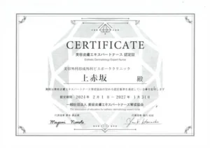 その取り組みの一環として、美容皮膚科領域において一定の専門性を認められたEDEN(美容皮膚エキスパートナース)の教育プログラムを修了した看護師が在籍しています。