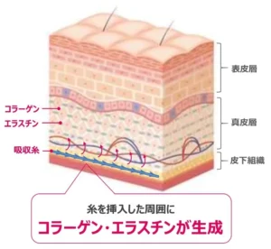 糸が吸収された後もコラーゲン生成が促進されるため、肌のハリや弾力の持続にも寄与します。